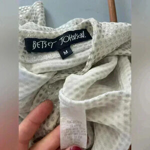 Introducing a vintage Betsey Johnson doll from the Y2K era, featuring a whimsical fairy design with a metallic silver polka dot pattern. This sleeveless mini dress has a scoop neckline and it’s a pullover making it easy to slip on and go. perfect for casual wear or parties. The dress is made of a combination of Lycra and acetate comfortable and a nice stretch slink to it.