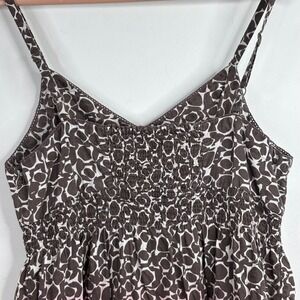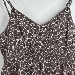 Vintage Y2K Babydoll Tank Top L Chocolate Brown Ombre Smocked Lace Boho Print 90s