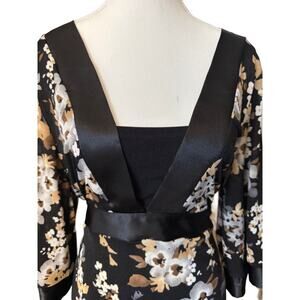 VTG Y2K Babydoll Top Floral Kimono Sleeve Satin Trim Empire Waist Whimsygoth XL