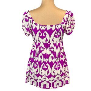 VTG Y2K Babydoll Top Sz.M Ikat Print Short Puff Sleeve Boho Coquette Festival