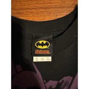 VTG Y2K Batman T-Shirt DC Comics Graphic Logo AOP Black Purple Men’s Size 2XL