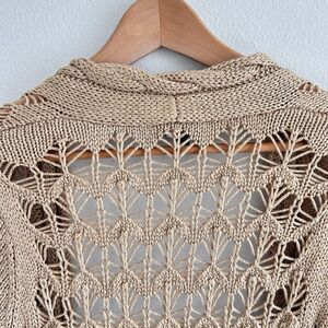 VTG Y2K Bebe Open Knit Cardigan Tan Size S Crochet Fairy Cottage Festival Boho