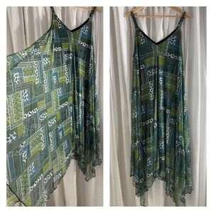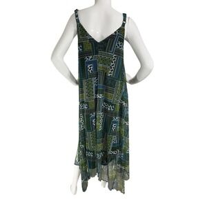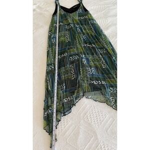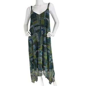 VTG Y2K Boho Dress XL Green Blue Patchwork Handkerchief Hem Flowy Light Fairy