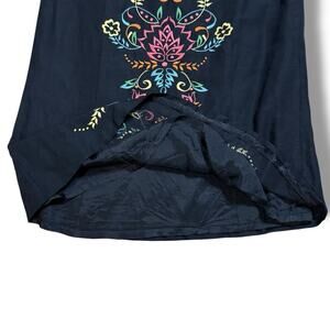 VTG Y2K Boho Embroidered Floral Harolds Skirt Size 8 Black Linen Blend Midi