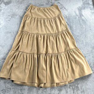 VTG Y2K Boutique Europa XL Tiered Maxi Skirt Tan Boho Western Prairie Faux Suede