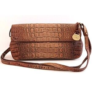 Authentic vintage Brahmin shoulder bag w dust bag. Y2K Pecan crocodile embossed leather. Includes the Brahmin gold fob bag charm. Bag is a flap front with a magnetic closure, inside zip pocket. Measures 11X3X6 plus the strap. Excellent vintage condition, leather is great, no rips or stains, lining is clean but does have a small ink stain in one corner shown in the listing photos. Great bag, nice size, big enough but not too big.