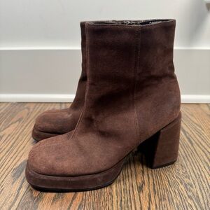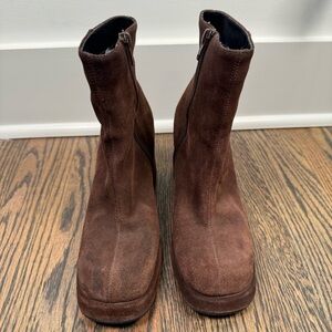 VTG Y2K Brown Suede Chunky Heel Platform Boots size 6