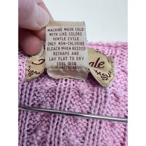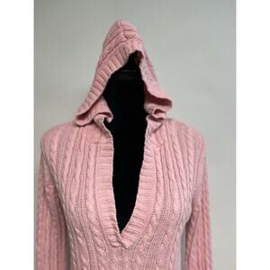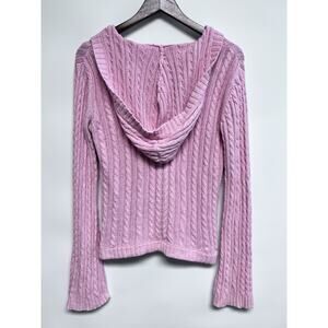 VTG Y2K Cable Knit Sweater L Pink Fitted V Neck Hooded Vampire Diaries Elena