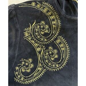 VTG Y2K Cacique Sweatshirt Velour Embroidered Black Gold Paisley Hoodie -22/24.