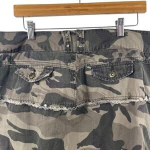VTG Y2K Camo Tiered Maxi Midi Skirt Sz 16W Stud Punk Goth Distressed Modest Army