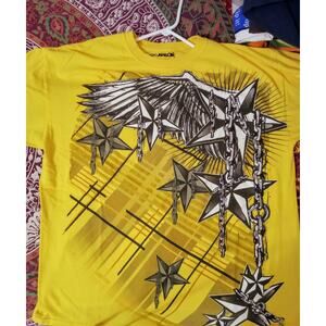 VTG Y2K Carbon Graphic Tee Yellow Nautical Star Emo Grunge Skate Streetwear XL