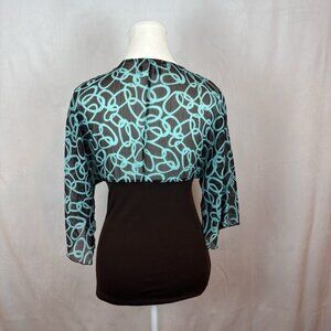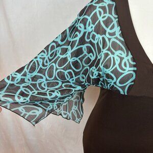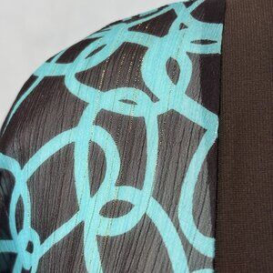 VTG Y2K Carrie Allen Women's Brown Blue Sheer BabyDoll Blouse Sz Large Metallic