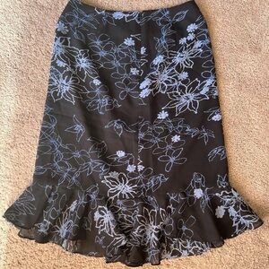 True Vintage Y2K Casual Corner Black Fishtail Short Skirt with blue floral accents.