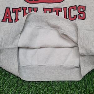 Vintage Y2K Champion Pyle Athletics sweatshirt mens medium grey red logo boxy fit crewneck pullover cotton poly fleece retro sporty