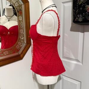 Vintage Y2K Clk Clk Clk red lace up ruffle lace bustier top with smocking and padding - Size Small, see measurements below!