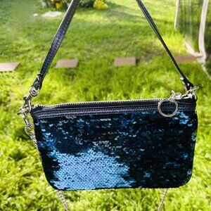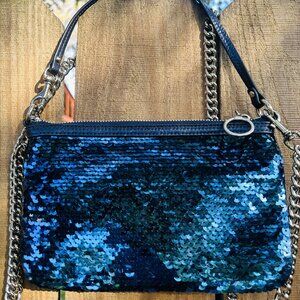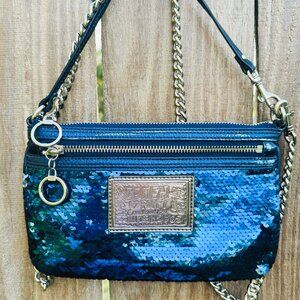 VTG Y2K Coach XL Poppy Sequin Wristlet Sapphire Blue Sparkle Purse Wallet