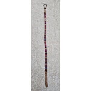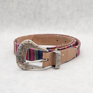 VTG Y2K Colorful Guatemalan Woven Embroidered & Leather Boho Belt Size XL