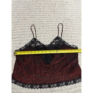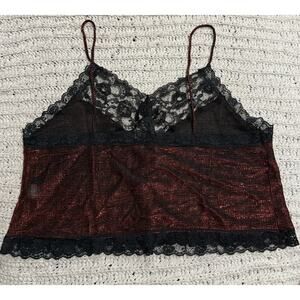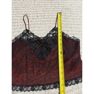 VTG Y2K Stroke of Midnight Cropped Lacy Tank Top V Neck Sparkle Red Black Women's Size Large Metallic Lingerie