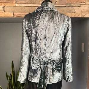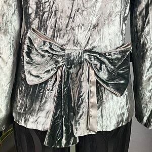 VTG Y2K Crushed Velvet Indie Grunge Bow Blazer Hippie Artsy Boho Blue Purple 10