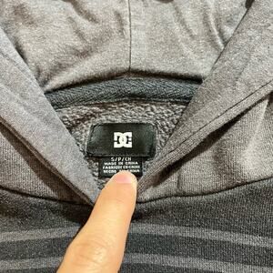 VTG Y2K DC Skateboarding Gray Striped Graphic Hoodie SZ S