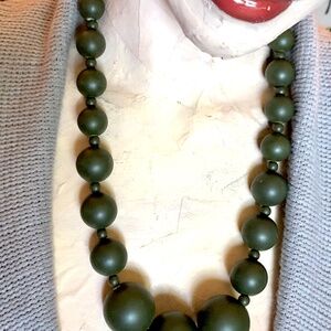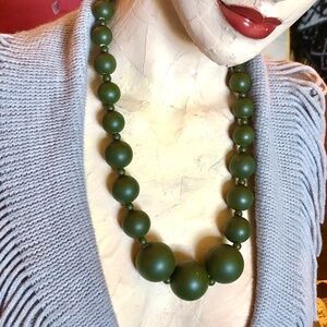 VTG Y2K Dark Green Faux Wood Chunky Huge Graduated Beaded Necklace~ Wired 25.5"L