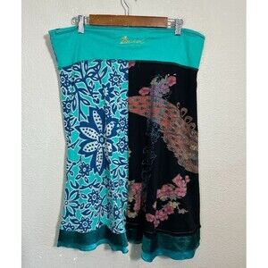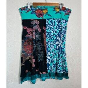 VTG Y2K Desigual A Line Circle Skirt XL Embroidered Patchwork Floral Whimsical