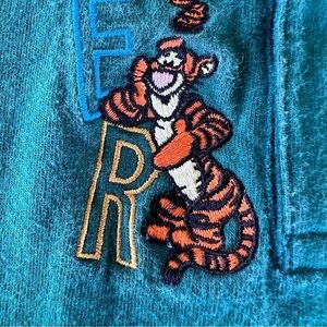 Vintage Disney Store Tigger Embroidered Henley. Unisex size large. Dark Green with Tigger embroidered along the front buttons. Really good condition with light wash wear/fade.