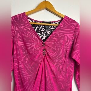 Stylish pink patterned women's top with a unique design. Perfect for adding a pop of color to your wardrobe.
