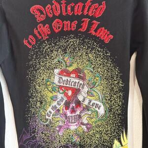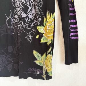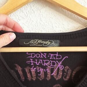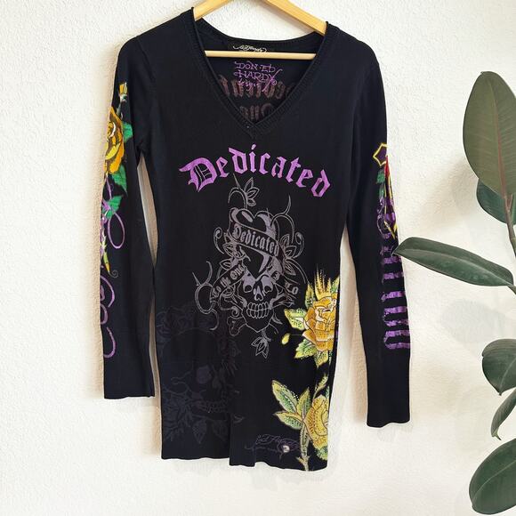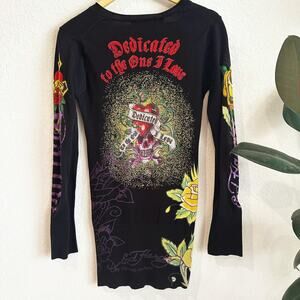 VTG Y2K Ed Hardy Sweater/Tunic Dress Medium Embellished Pull-Over Fitted Grunge