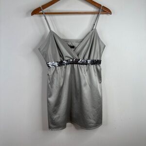 VTG Y2K Express Babydoll Tank M Silver Sequin Cami Retro 90s Fairy Whimsigoth