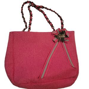 Y2K 2000s Barbie Wool Blend Chains Ribbons Emblem Tote Shoulder Bag Purse Bag Limited Edition