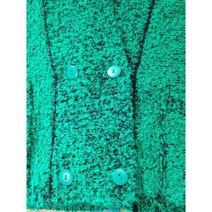 VTG Y2K Green Chunky Cardigan Sweater S Double Breasted V-Neck Oversized Pockets