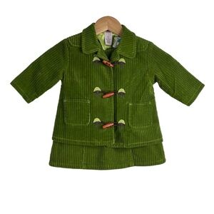 VTG Y2K Gymboree Corduroy Pea Coat Dress Set 18M Green Toggle Button Mushroom