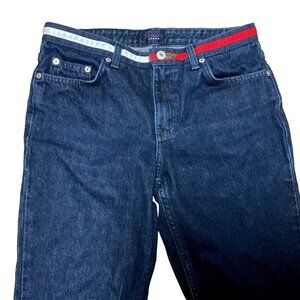 VTG Y2K HIPSTER FLARE JEANS SIZE 7 BLUE TOMMY HILFIGER FLAG WAISTBAND WOMENS