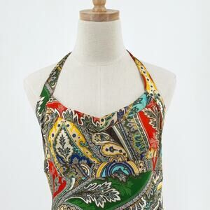 VTG Y2K J Crew Womens 100% Silk Babydoll Halter Top Size 4 Paisley Old Money