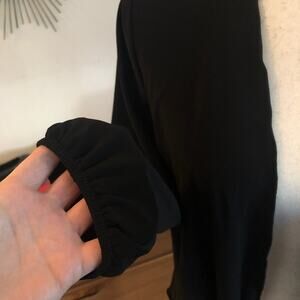Keywords: Joseph Ribkoff, vintage blouse, tie front top, minimalist black jersey, stretch knit, quiet luxury, elegant eveningwear, made in Canada, dark romantic, 2000s style, timeless classic