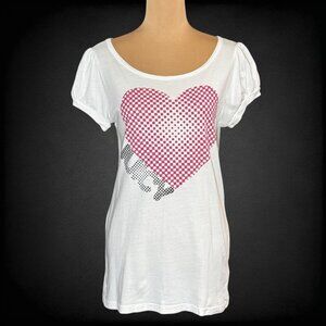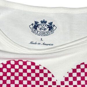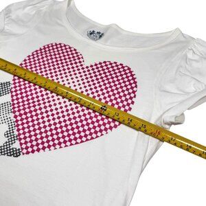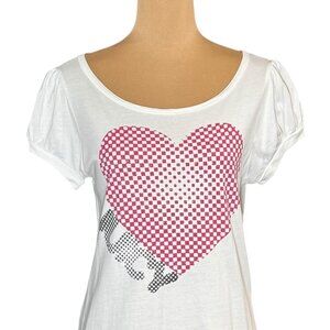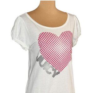 VTG Y2K Juicy Couture Graphic Tee Sz.L White Metallic Heart Logo Puff Sleeve