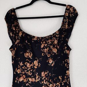 VTG Y2K La Belle Babydoll Milkmaid Midi Dress Women M Black Floral Whimsigoth