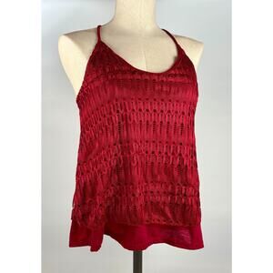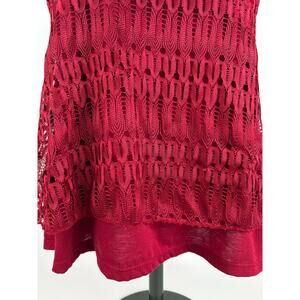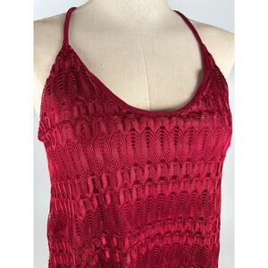 Red Crochet Tank Top Sheer Knit Festival Boho Layered