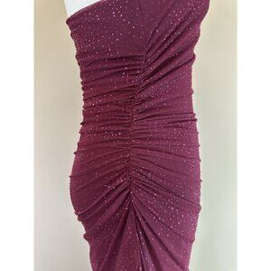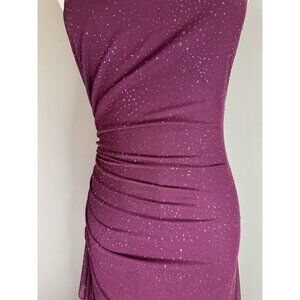VTG Y2K Long Formal Dress Women S One Shoulder Sparkle Overlay Ruched Ruffle