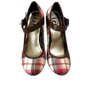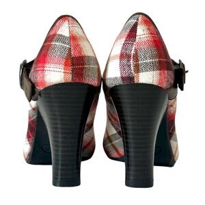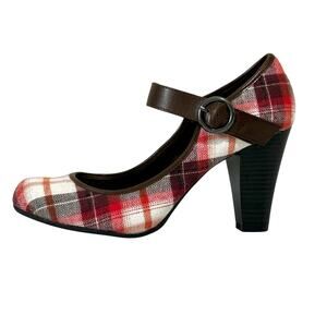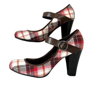 VTG Y2K Mary Jane Heels Academia Fall Red Brown Plaid Academia Preppy Size 9