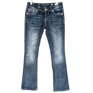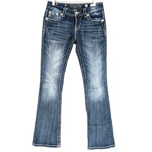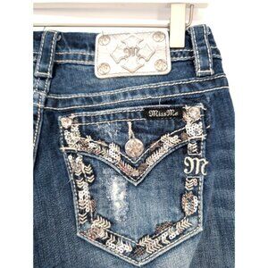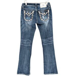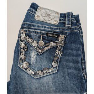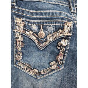 VTG Y2K Miss Me Sequin Vine Pocket Low Rise Boot Cut Distressed Bling Jeans 27