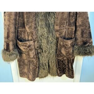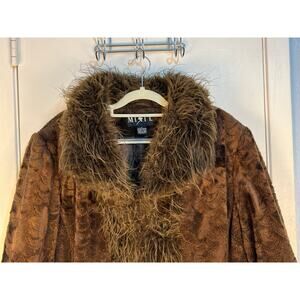 VTG Y2K Mixit Faux Fur Velvet Velour Penny Lane Coat XL Brown Shaggy Boho