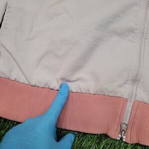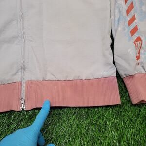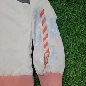 VTG Y2K Nike Track Jacket Womens XL Rare Graphic Sleeve Bomber Nike Sportswear (NSW) Graphic Sleeve Sleeve Hit Floral Paisley Geometric Abstract Grey Pink Dusty Rose Mauve Orange Full Zip Zip Up Blouson Fit