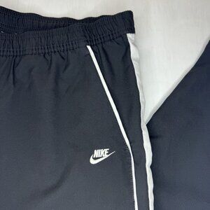 VTG Y2K Nike Track Pants Mens Medium Black Wide Open Leg Relaxed White Stripe