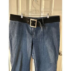 VTG Y2K No Boundaries Flare Juniors Sz 23 Jean Blue W/Faux Suede Belted Front