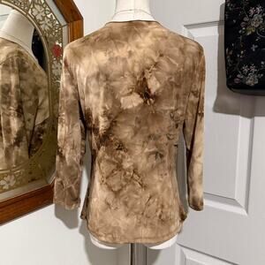 Vintage Y2K Only Nine light brown tie dye sequin embroidered faux wrap 3/4 sleeve top - Size Medium, see measurements below!
