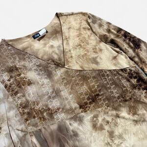 VTG Y2K Only Nine Light Brown Tie Dye Sequin Embroidered 3/4 Sleeve Boho Top M