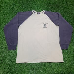 VTG Y2K Polo Jeans Co T-Shirt Mens XL (Tagged M) Oversized Fit Baseball Tee Logo Heavyweight V-Notch Faded Navy Cream Baggy Fit Loose Fit Two Tone Color Block Ralph Lauren Raglan