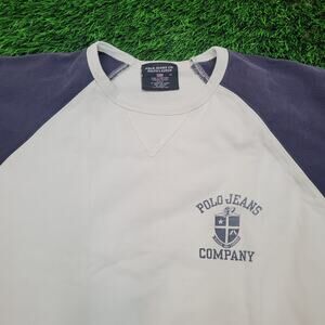Y2K Polo Jeans Co Ralph Lauren two tone raglan tee navy cream XL oversized heavyweight logo shirt shop vintage casual now